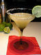 Frapper et servir dans un verre à cocktail avec un trait de sirop de grenadine préalablement givré au sel.